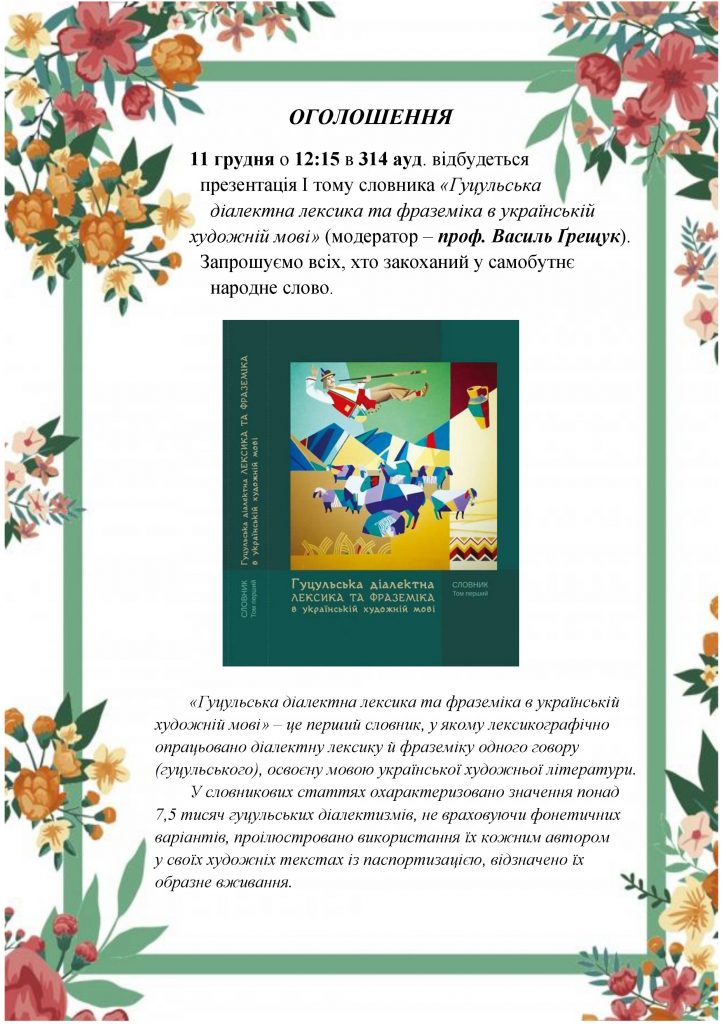 Відбулася презентація І тому словника “Гуцульська діалектна лексика та фраземіка в українській художній мові”