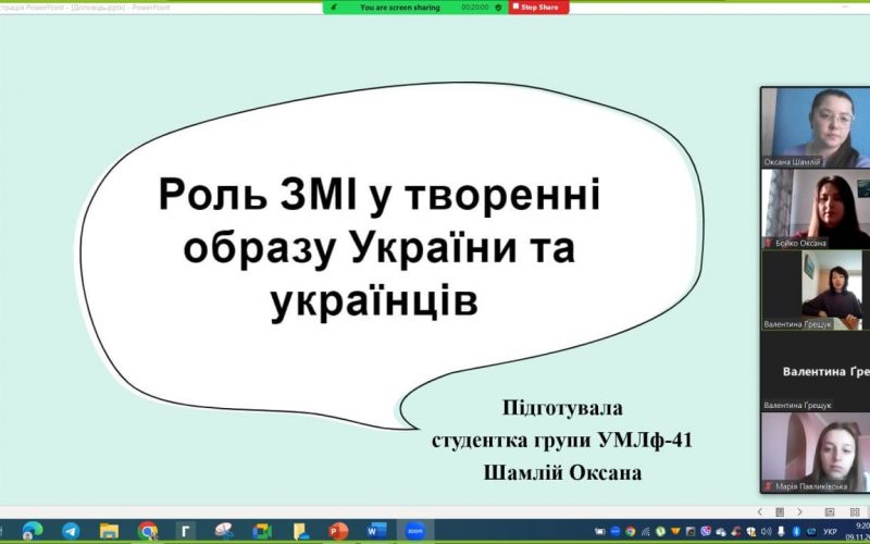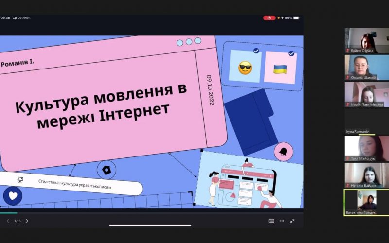 Не менш оригінальним було вітання із Днем української писемності та мови маґістрині Марії Гуменів, яка згадала про цікавий вид контрольного завдання під час навчання на бакалавраті зі Стилістики і культури української мови (викладач Валентина Ґрещук) і поділилася фрагментом своєї роботи на сторінці у фейсбуці. Дбати про чистоту нашої мови закликають провідні фахівчині Навчально-наукового інституту українознавства, маґістрині Христина Коцюбка та Марта Хоменець у змонтованому відеороликові. Дівчата підкреслюють силу слова і акцентують увагу на його красі. Надзвичайно змістовними сьогодні на занятті зі Стилістики і культури української мови (викладач Валентина Ґрещук) були виступи бакалавринь Оксани Шамлій “Роль ЗМІ у творенні образу України та українців” та Ірини Романів “Культура мовлення в мережі Інтернет”, у яких були висвітлені дуже актуальні питання мови.