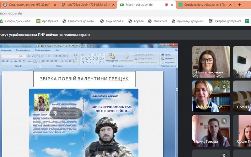 День української писемності та мови відзначають щороку 9 листопада. Ми вкотре переконуємося, що цінувати та плекати рідне слово надзвичайно важливо, адже воно є генетичним кодом нації. Мова − це найважливіший засіб спілкування і пізнання та один із ключових факторів незалежності нашої держави, мова, – як зазначає у своїй поетичній збірці “Ми зустрінемось там, де не буде війни…” директорка Навчально-наукового інституту українознавства Валентина Ґрещук, – це зброя, це нації нерв. Сьогодні під таким гаслом відбулася профорієнтаційна зустріч із учнями 10 класу Рогатинського ліцею “Гімназія імені Володимира Великого”, яку організувала провідна фахівчиня Навчально-наукового інституту українознавства Христина Коцюбка. На зустріч завітали викладачі Факультету філології: доктор філологічних наук, професор, завідувач кафедри української мови Ґрещук Василь Васильович та кандидатка філологічних наук, доцентка кафедри загального та германського мовознавства Ґрещук Валентина Василівна. Ліцеїсти із задоволенням познайомилися із новою поетичною збіркою Валентини Василівни “Ми зустрінемось там, де не буде війни…” та мали можливість почути поетичне слово із уст самої авторки. Валентина Василівна продекламувала декілька поезій, та, вітаючи всіх із святом, люб’язно запросила ліцеїстів продовжити навчання на Факультеті філології у Прикарпатському національному університеті імені Василя Стефаника.