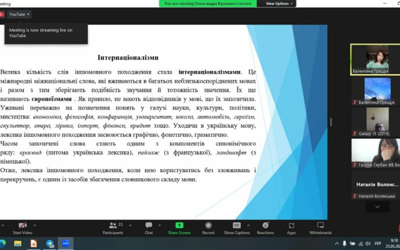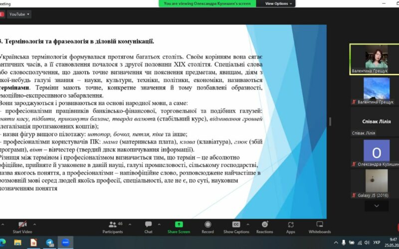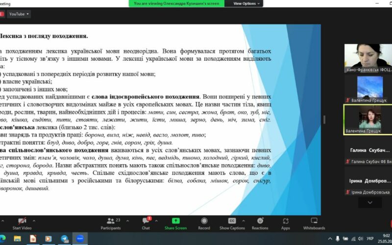 Відрадно, що 25 травня, у День філолога, директорка навчально-наукового Інституту українознавства, доцентка кафедри загального та германського мовознавства Валентина Ґрещук провела лекцію для працівників органів державної влади, органів місцевого самоврядування, державних підприємств, установ і організацій на тему “Лексика з погляду походження. Типові помилки вживання іншомовних слів. Термінологія та фразеологія в діловій комунікації”. Під час лекції Валентина Василівна не лише розповіла про основні пласти походження лексики, правила уживання іншомовних слів у діловій комунікації, явище пуризму, особливостях вживання термінології та фразеології у офіційно-діловому спілкуванні, а й порушила актуальні проблеми, що стосуються мовного питання на сучасному етапі, закцентувала увагу на тому, що в непростих умовах сьогодення мова – наш щит, маркер, який визначає нашу ідентичність, “це – зброя, це – сила, це – нації нерв” (Валентина Ґрещук “Ми зустрінемось там, де не буде війни…”). Вона єднає, захищає нашу духовність та закликає до боротьби.