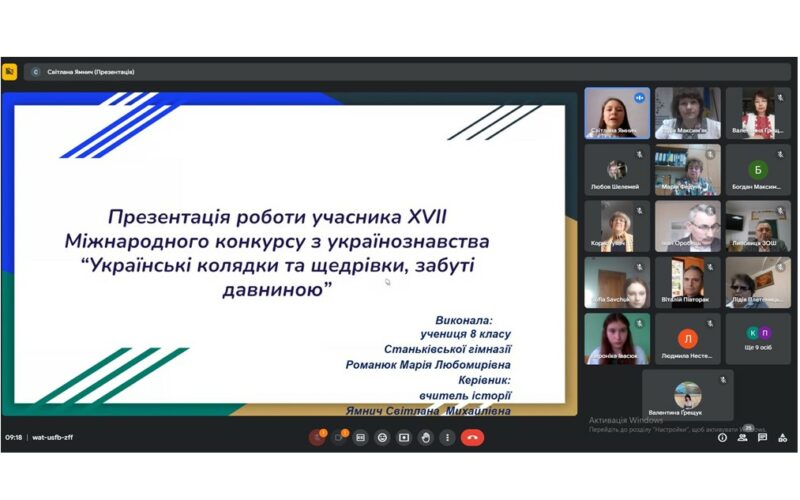 8-9 лютого відбувся II етап XVII Міжнародного конкурсу з українознавства для учнів 8-11 класів ЗЗСО. Учасники конкурсу публічно захистили власні науково-дослідні роботи у дистанційній формі на платформі Google Meet.