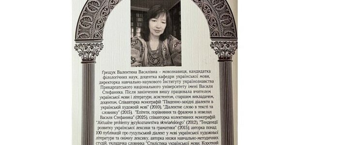 23 жовтня 2024 року директорка навчально-наукового Інституту українознавства, кандидатка філологічних наук, доцентка кафедри української мови Ґрещук Валентина Василівна провела відкриту лекцію на тему: “Патріотичне виховання здобувачів загальної середньої та вищої освіти засобами поетичного тексту” для здобувачів вищої освіти і викладачів Кам’янець-Подільського національного університету імені Івана Огієнка. На цю зустріч долучилися всі охочі, в тому числі і студенти Прикарпатського національного університету імені Василя Стефаника. Це була жива й тепла зустріч із зацікавленою авдиторією, під час якої дискутували, ставили запитання й шукали відповіді.