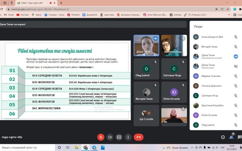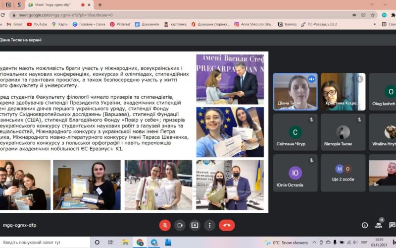 On Friday, December 3, on the initiative of the director of our Institute, a meeting was held with future entrants, students of the Shevchenko Lyceum of Vyhoda village council. The organizer of career guidance work was Master Diana Tysyak, who already works at this lyceum. The leading specialist of our Institute Hanna Shkoruta and master Khrystyna Kotsyubka joined the conversation. Students were told about the benefits of studying at the Faculty of Philology of Vasyl Stefanyk Precarpathian National University, a list of specialties, features of admission, and shared their own experience of studying at the university.