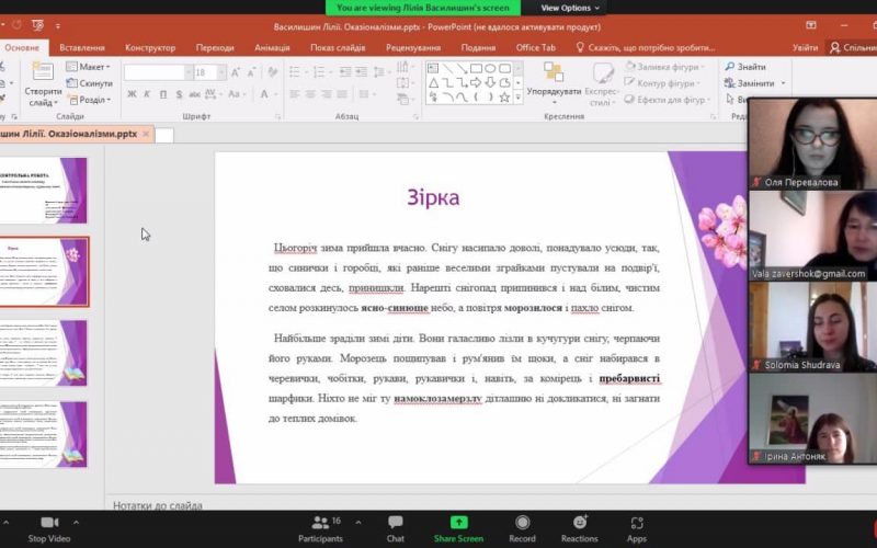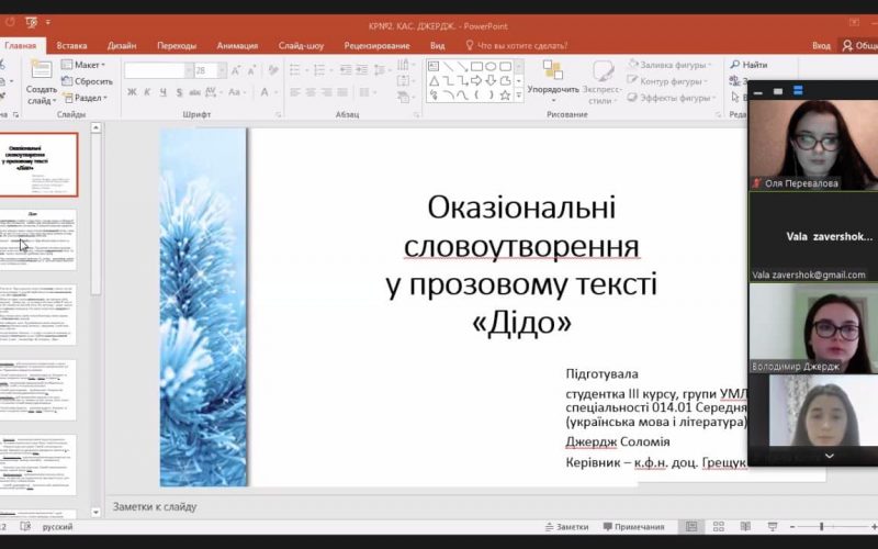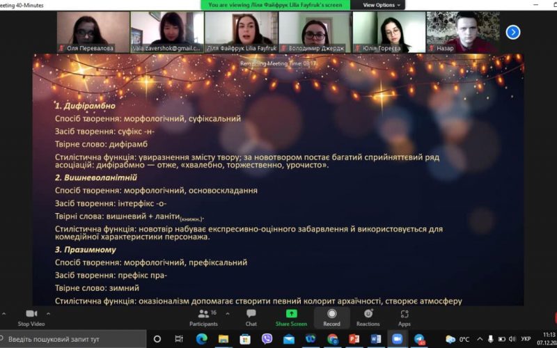 The philologists of 4th year of studying used all their creativity and imagination in preparation for the final lesson in the discipline “Stylistics and Culture of the Ukrainian Language”, which was conducted in an interesting way. The task that students had to perform was to present all styles of the Ukrainian language. The bachelors noted that such atypical classes under the guidance of the director of our Institute are a clear example of “not boring” distance learning.