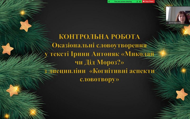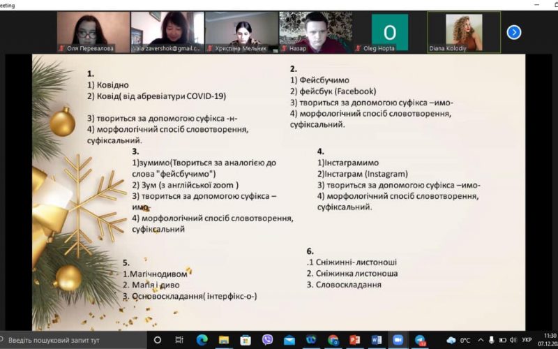 Under the guidance of the director of our Institute, students of the 3rd year of studying had the opportunity to express themselves creatively in the course “Cognitive aspects of word formation” by presenting texts of different styles with their own word formations. New Year’s themes, which mostly appeared in the works, caused a festive mood in everyone, created an atmosphere of comfort and warmth. Bachelors have once again demonstrated that it is very important to creatively combine theory with practice in the learning process (offline and online). During the semester, everyone worked actively and willingly, so they were able to prove themselves pedagogically, creatively, professionally, aptly, methodically. In the end, occasionally!