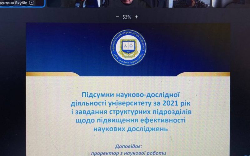 Therefore, after hearing and discussing the report of the Vice-Rector for research Valentina Yakubiv on the results of research activities of the University in 2021 and the task of structural units to improve research efficiency, the Academic Council noted that in the reporting year the university systematically took measures to improve research work on priority areas of science and technology. However, in the organization and implementation of research there are a number of problems that require urgent solution.